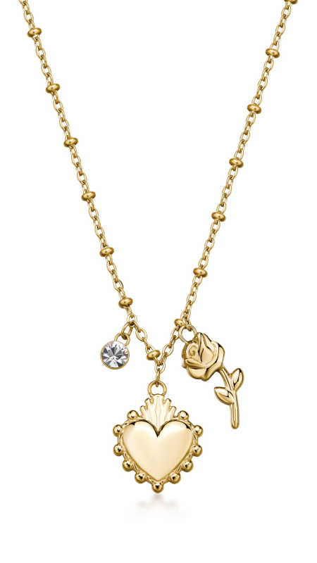 Brosway Krásný pozlacený náhrdelník Srdíčko s růží Chakra BHKN182