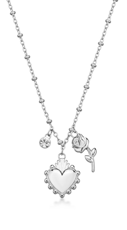 Brosway Krásný ocelový náhrdelník Srdíčko s růží Chakra BHKN181