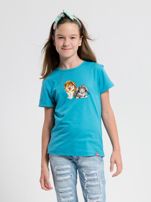 Dětské tričko cityzen dorotka s potiskem králíčci petrolejová 164-170