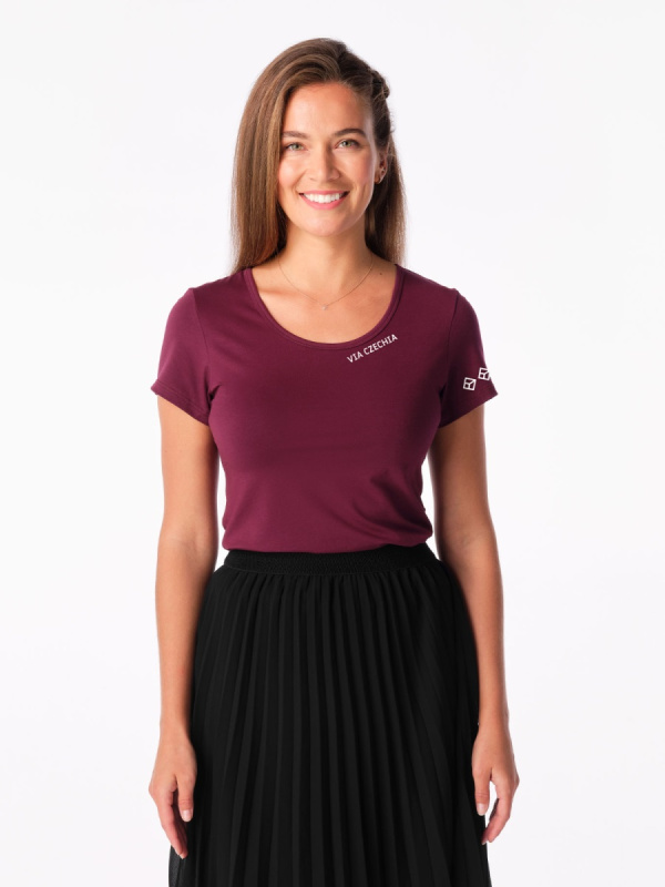 Dámské tričko cityzen breda s potiskem via czechia bordó 38