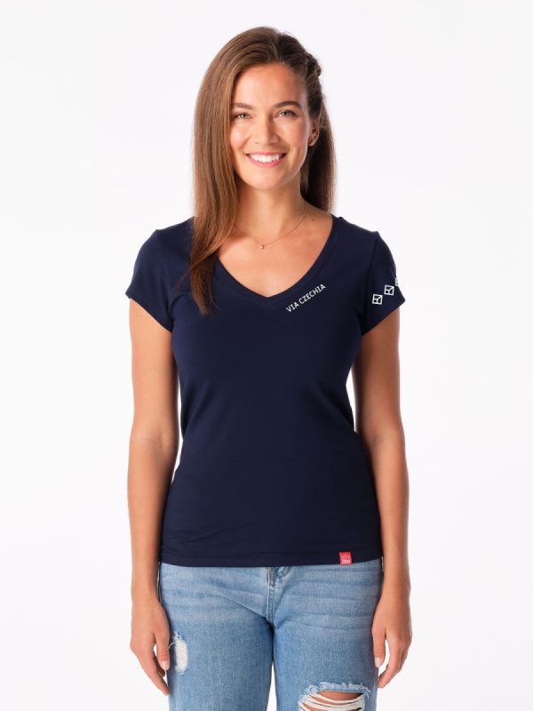 Dámské tričko cityzen florencia s potiskem via czechia tmavě modrá 36