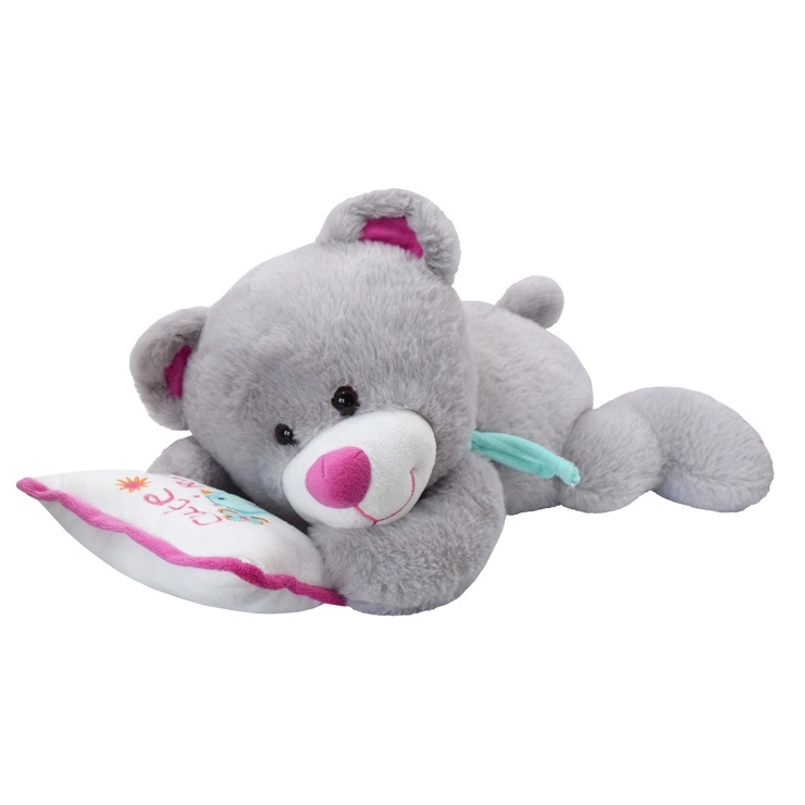 šedý plyšový medvídek na polštářku