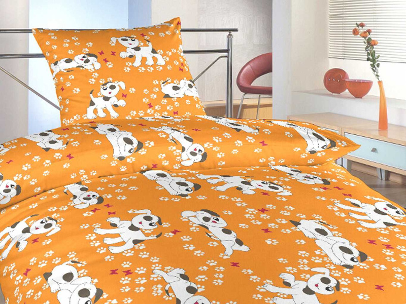 DADKA VRACOV Dadka Povlečení krep Pejsci oranžoví 140x200, 70x90 cm