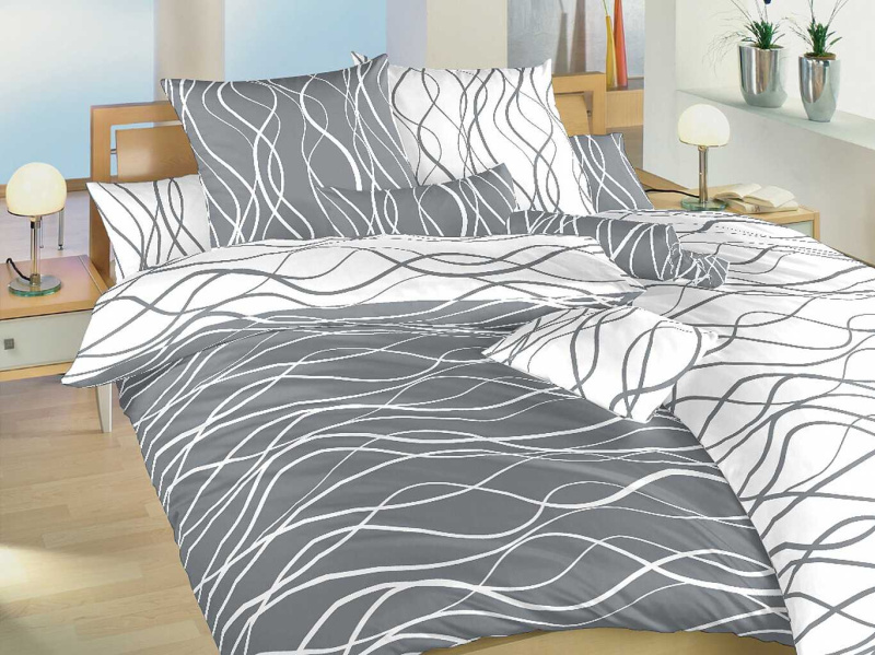 DADKA VRACOV Dadka Povlečení krep Vlny bílé/tm.šedé DUO 140x220, 70x90 cm