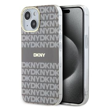 DKNY PU Leather Stack Logo Wrist Strap Zadní Kryt pro iPhone 14 Brown
