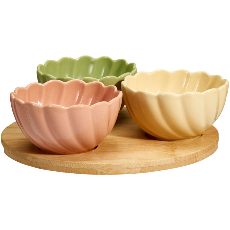 EH Excellent Houseware Servírovací sada (3 misky + bambusový podnos), 150 ml vícebarevný 104571
