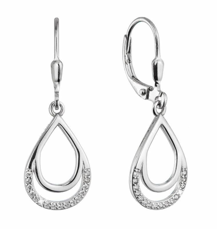 Evolution Group - Pavona Elegantní stříbrné visací náušnice Slza se zirkony 11538.1
