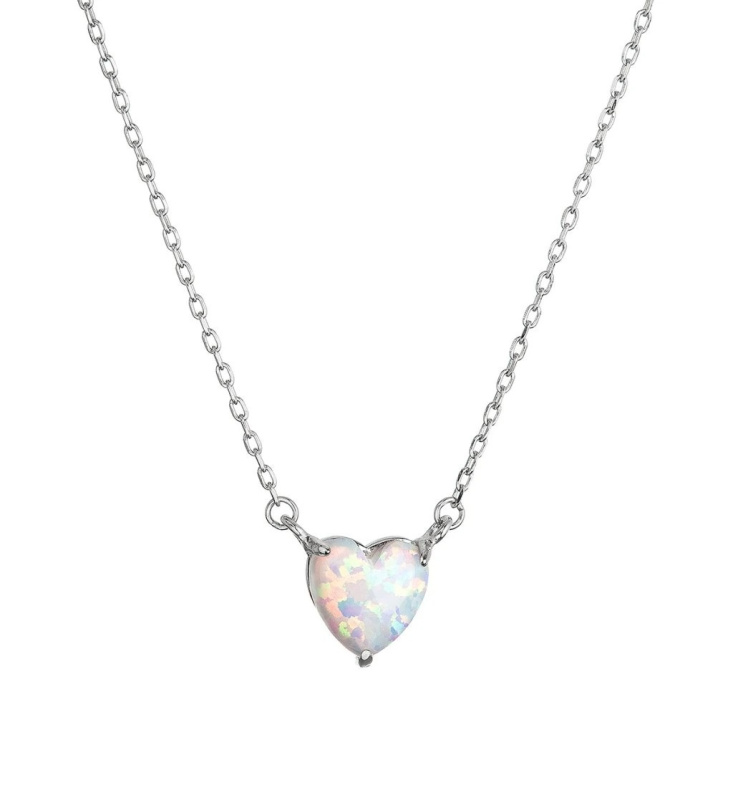 Evolution Group - Pavona Stříbrný srdíčkový náhrdelník se syntetickým bílým opálem 12147.1