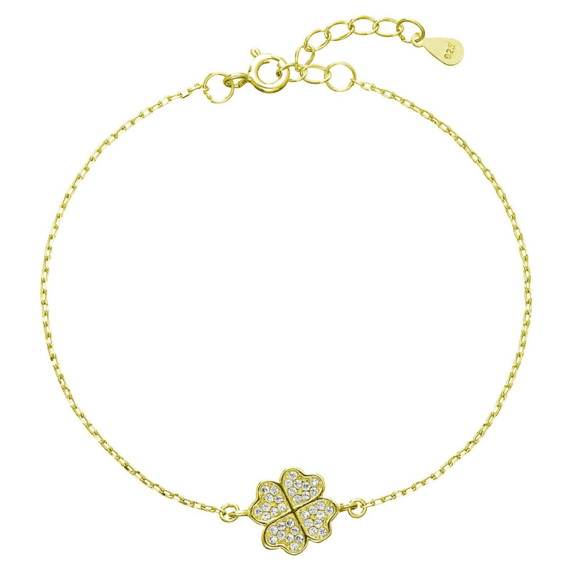 Evolution Group - Pavona Pozlacený náramek se zirkony Čtyřlístek pro štěstí 13008.1