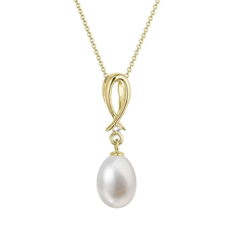 Evolution Group - Pavona Moderní zlatý náhrdelník s pravou říční perlou a briliantem 92PB00034