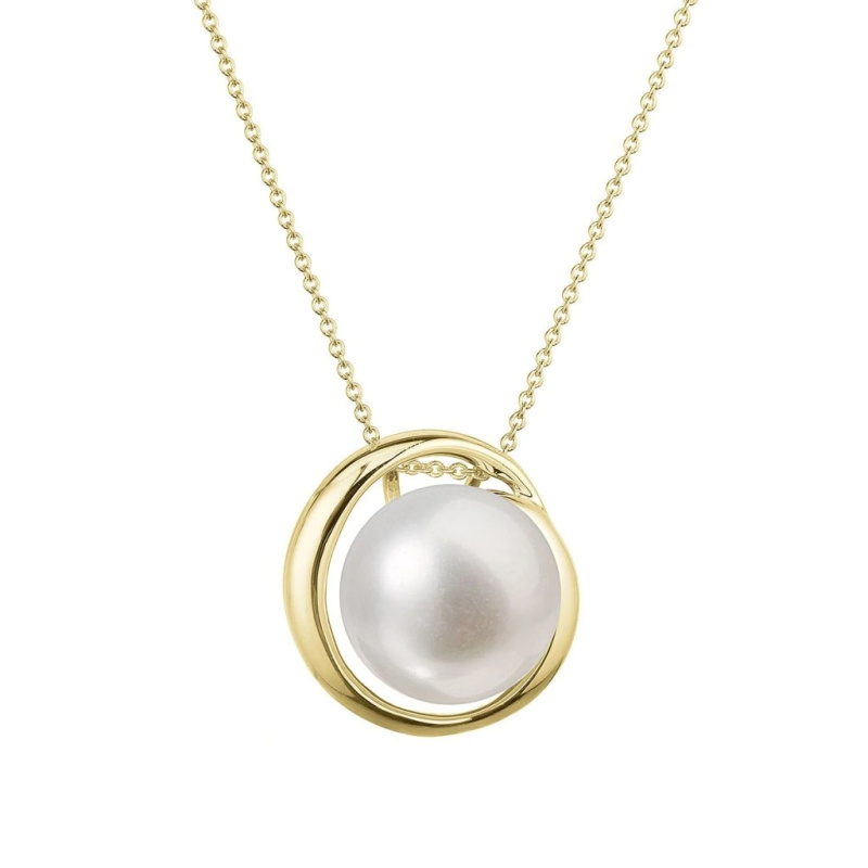 Evolution Group - Pavona Dámský zlatý náhrdelník s říční perlou Kruh 92P00041