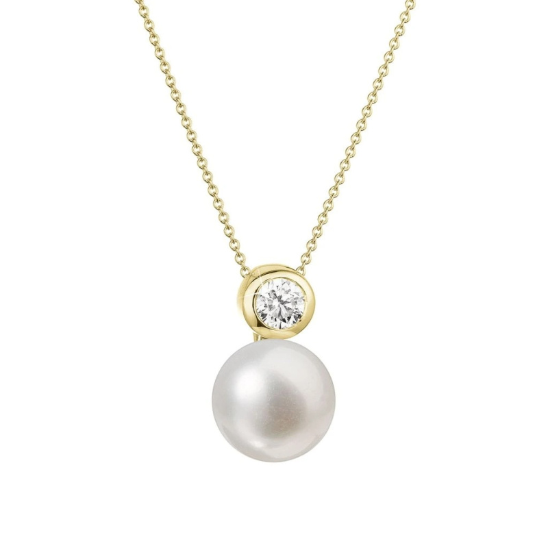 Evolution Group - Pavona Zlatý náhrdelník s bílou říční perlou a briliantem 92PB00045