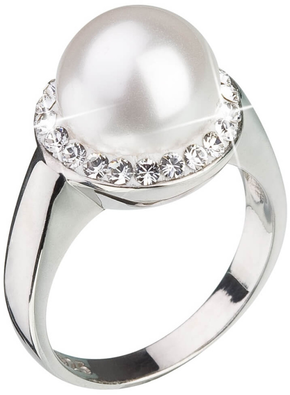 Evolution Group - Pavona Stříbrný prsten s krystaly Preciosa a bílou perlou 35021.1 56 mm