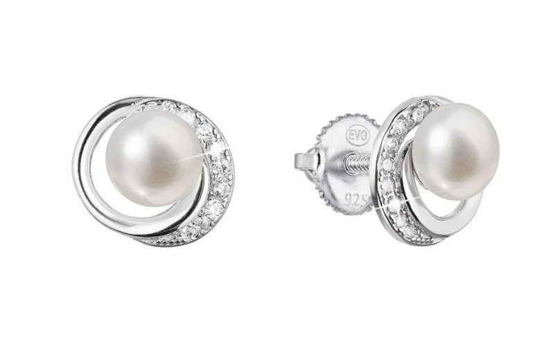 Evolution Group - Pavona Stříbrné náušnice pecky s kulatou říční perlou a zirkony 21098.1S