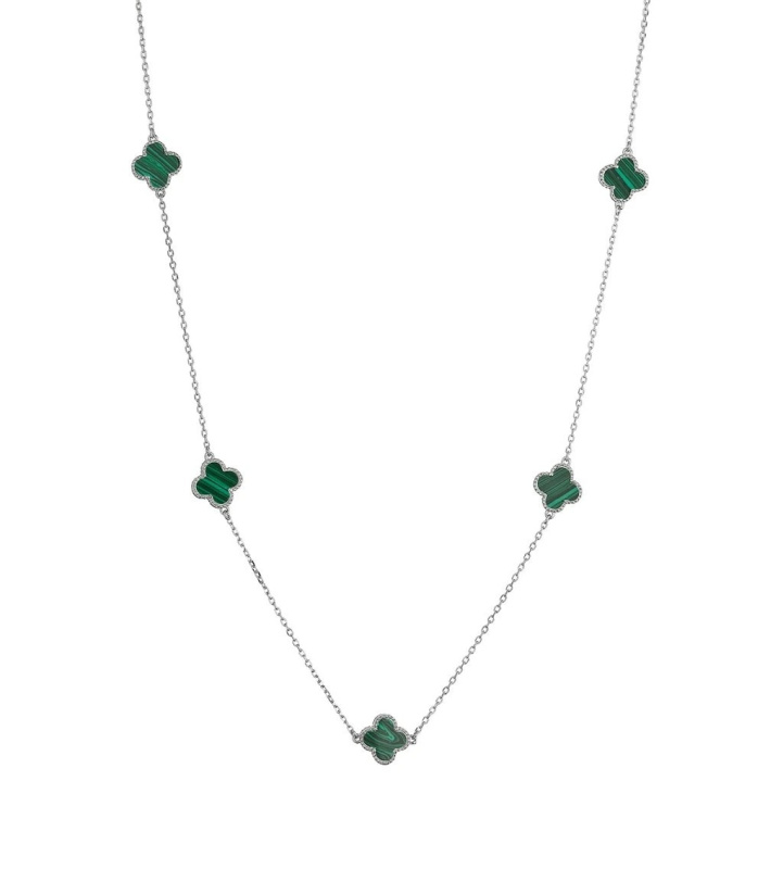 Evolution Group - Pavona Krásný stříbrný náhrdelník Čtyřlístky s malachitem 12150.3