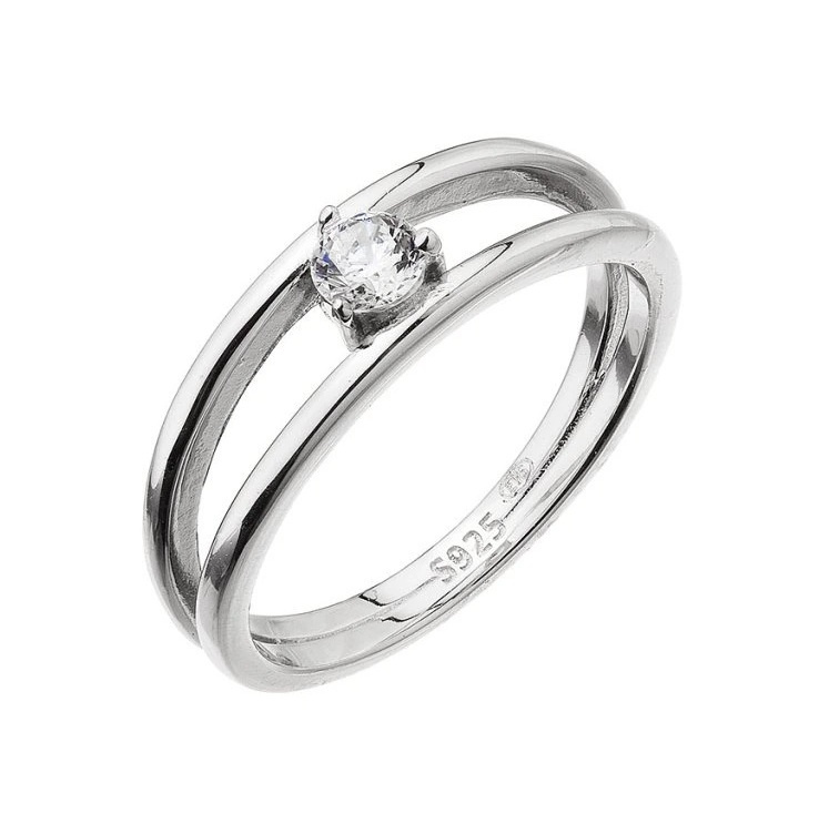 Evolution Group - Pavona Rozdvojený stříbrný prsten s čirým zirkonem 15017.1 crystal 52 mm