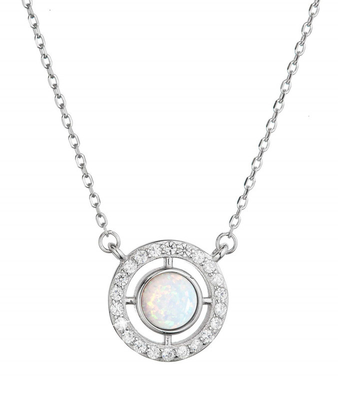 Evolution Group - Pavona Elegantní náhrdelník se syntetickým bílým opálem a zirkony 12066.1 white