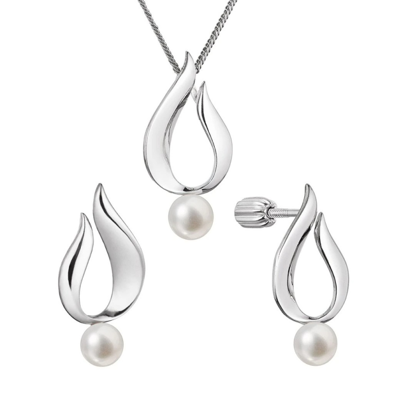 Evolution Group - Pavona Krásné stříbrné visací náušnice s kulatou říční perlou 21095.1B