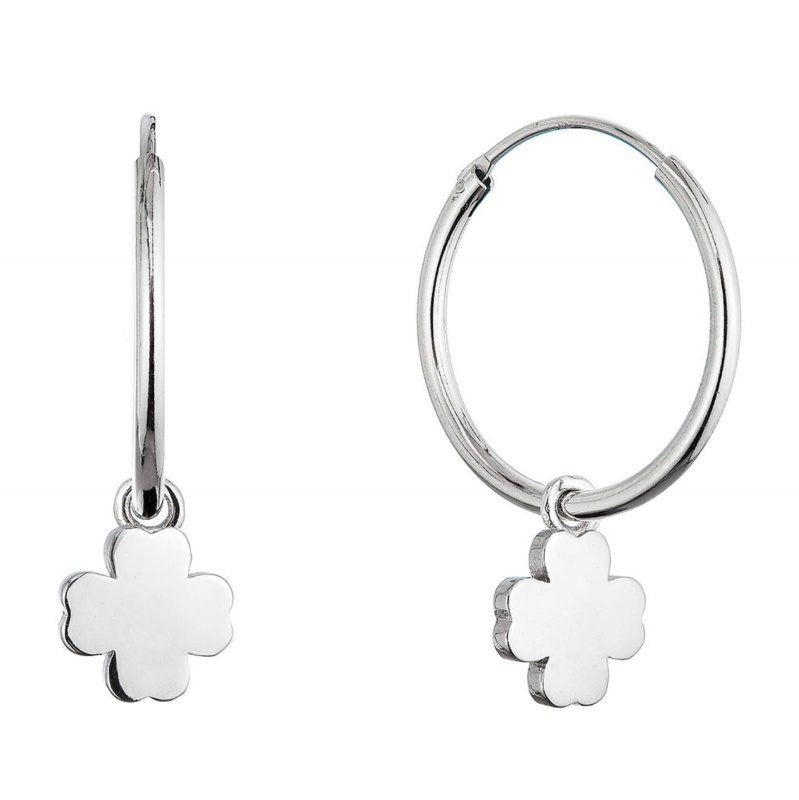 Evolution Group - Pavona Stříbrné kruhové náušnice 2v1 se čtyřlístky 61057