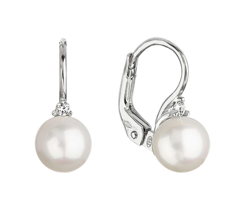 Evolution Group - Pavona Stříbrné náušnice visací slzička s říční perlou 21086.1B
