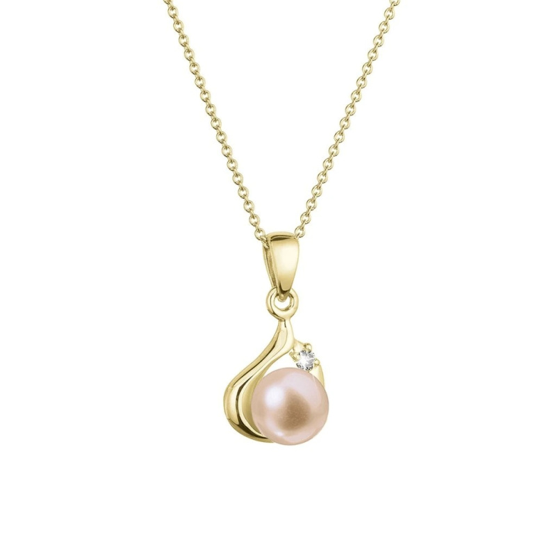 Evolution Group - Pavona Exkluzivní zlatý náhrdelník s růžovou pravou perlou a brilianty 92PB00047 pink