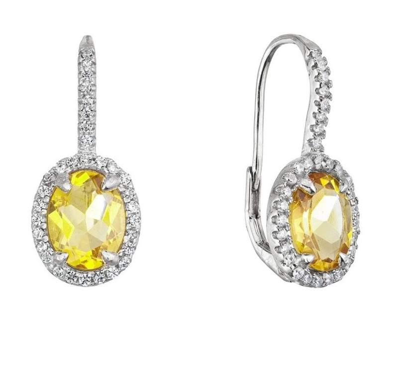 Evolution Group - Pavona Luxusní stříbrné náušnice se zirkony a pravým citrínem 11492.3