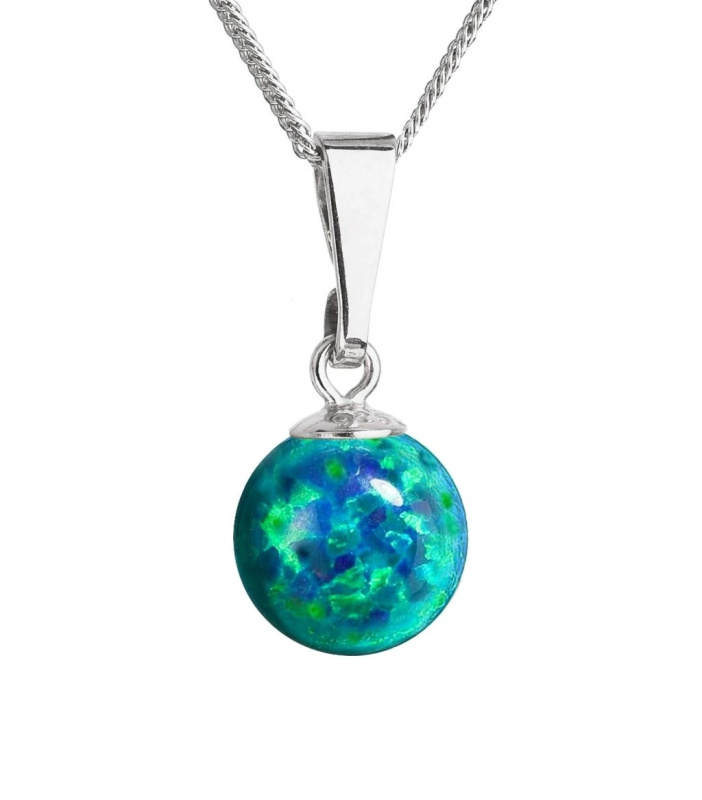 Evolution Group - Pavona Úchvantý stříbrný náhrdelník se syntetickým zeleným opálem 12050.3