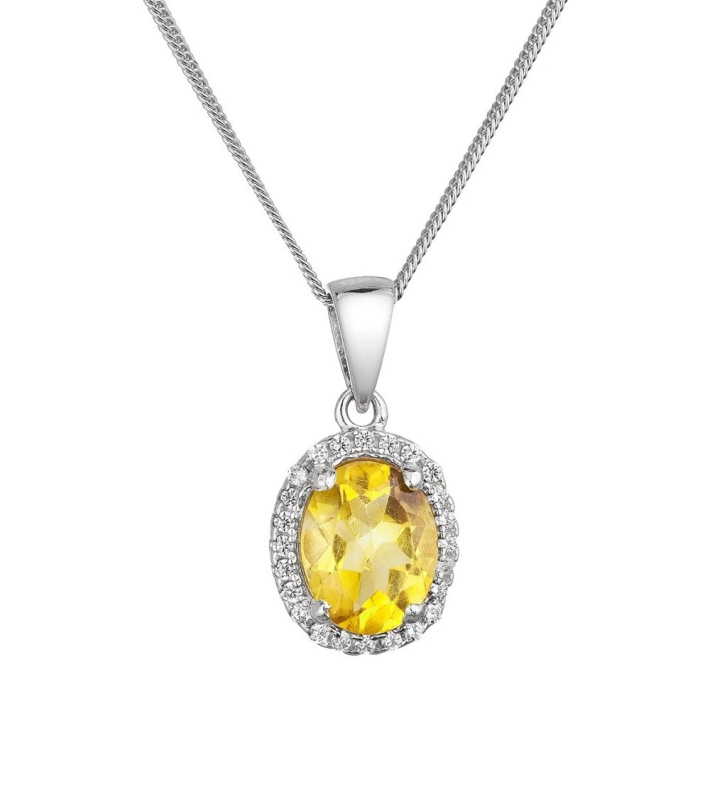 Evolution Group - Pavona Blyštivý stříbrný náhrdelník s pravým citrínem a zirkony 12086.3