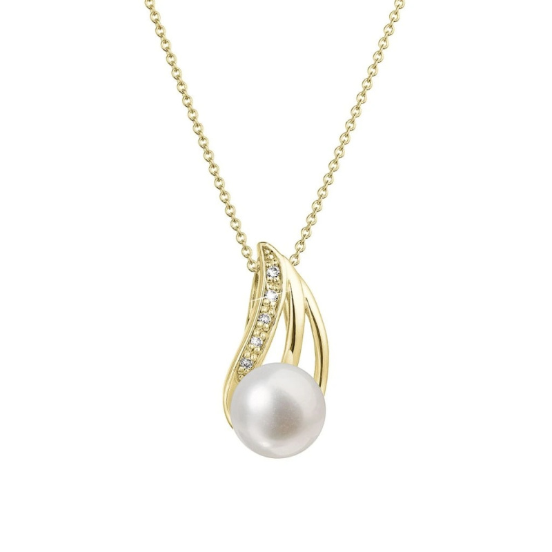 Evolution Group - Pavona Okouzlující zlatý náhrdelník s pravou perlou a oslnivými brilianty 92PB00051