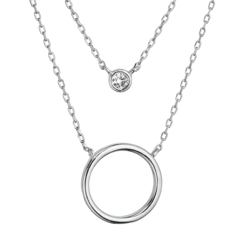 Evolution Group - Pavona Dvojitý stříbrný náhrdelník Kruh a zirkon 12111.1