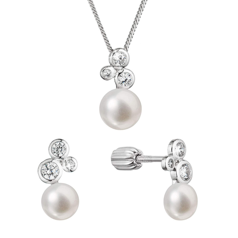 Evolution Group - Pavona Stříbrný prsten s bílou říční perlou a zirkony 25002.1 54 mm