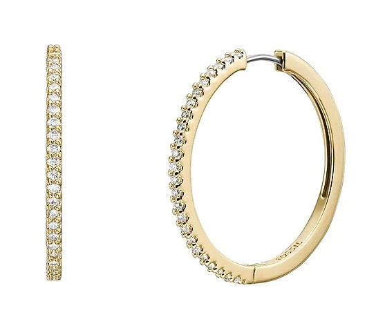 Fossil Slušivé pozlacené kruhové náušnice s krystaly Ellis JF04913710