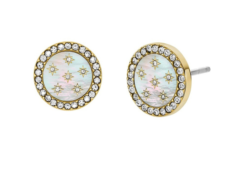 Fossil Okouzlující pozlacené náušnice s perletí a krystaly JF04868710