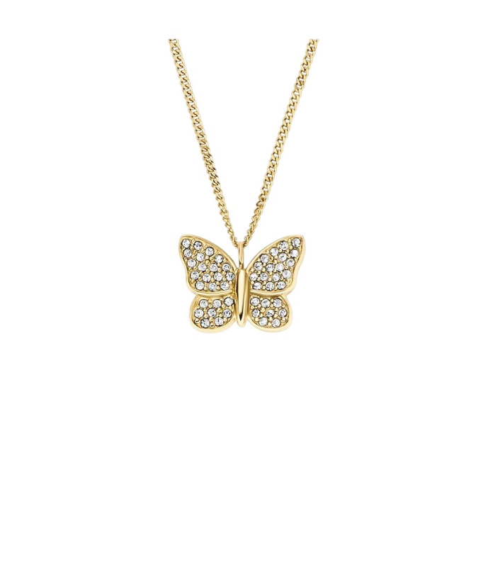 Fossil Elegantní pozlacený náhrdelník s krystaly Motýl JF04920710