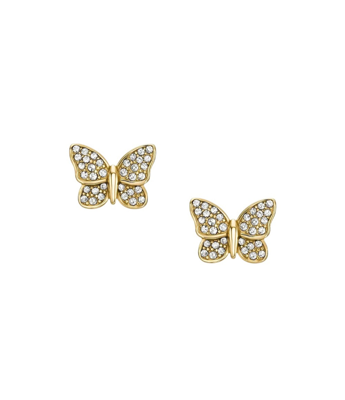 Fossil Slušivé pozlacené náušnice s krystaly Motýl JF04922710