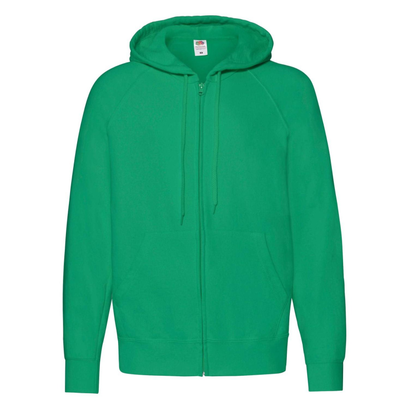 Green Men's Hoodie Lightweight Zip Thru Hooded Sweat Fruit of the Loom