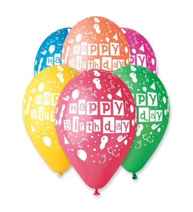 Balónky nafukovací průměr 30cm - potisk HAPPY BIRTHDAY, 10ks