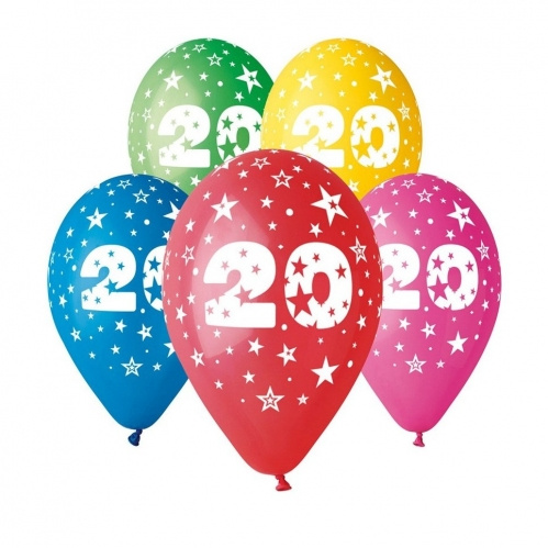 Balónky nafukovací průměr 30cm – potisk číslice "20", 10ks