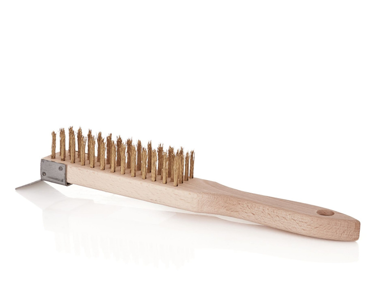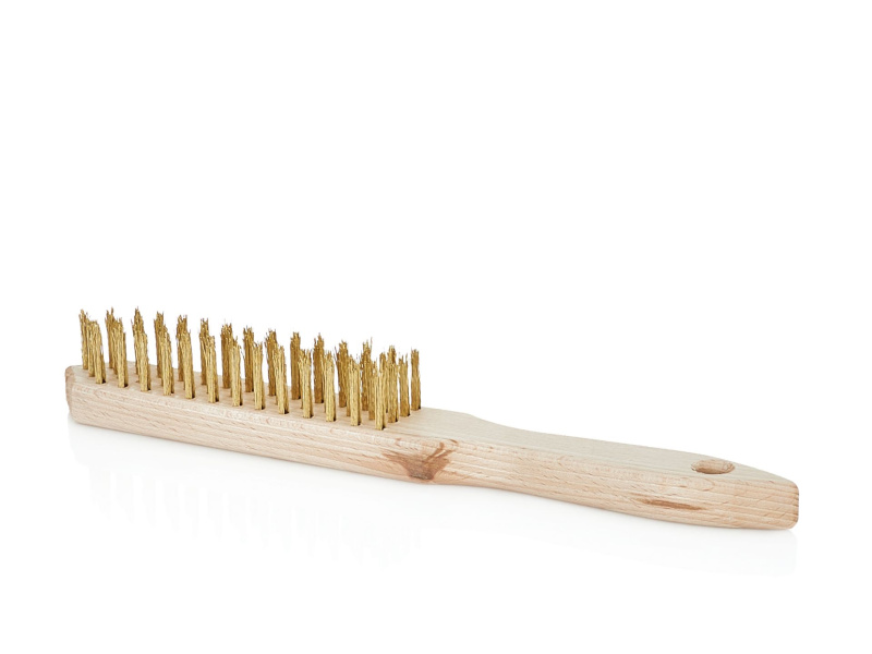 GEKO Kartáč ocelový, pomosazený, 4 řady, dřevěný