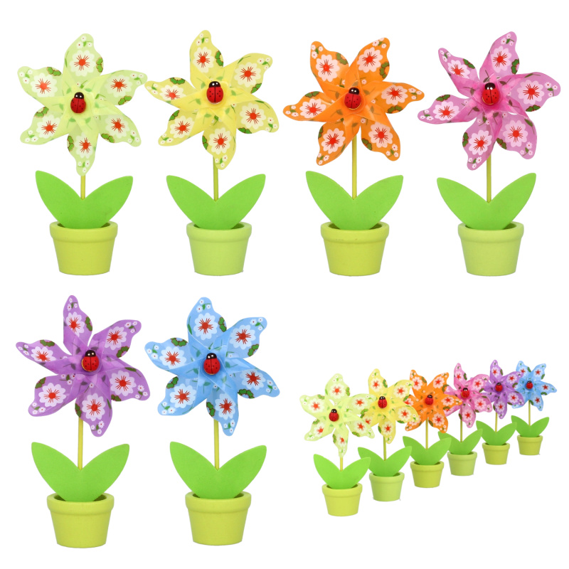 Větrník s beruškou do květináče 9 × 15 cm – mix 6 barev