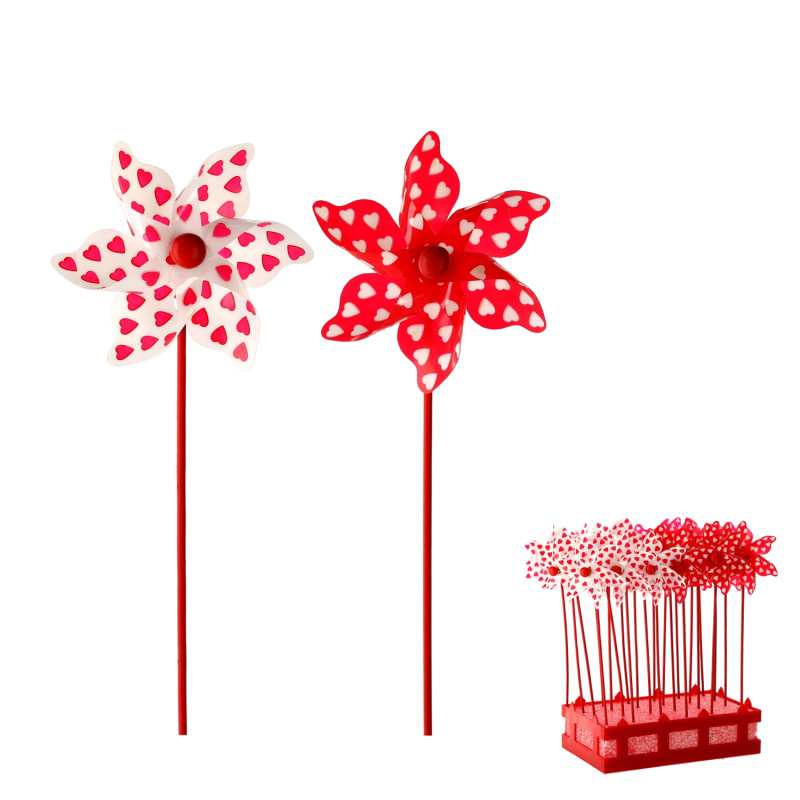 Větrník se srdíčky 9 × 27,5 cm bílý/červený