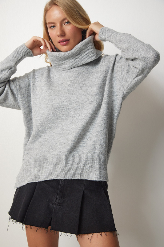 Štěstí İstanbul Dámský šedý rolák pletený svetr