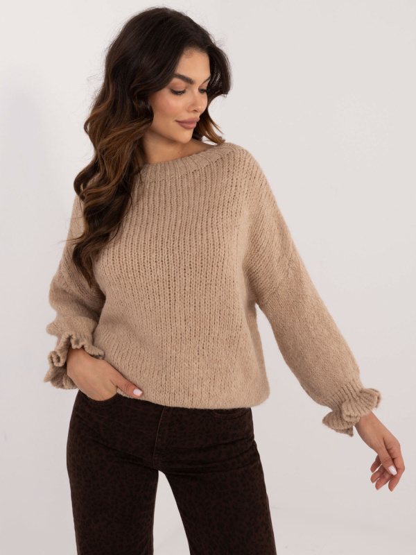 Tmavobéžový svetr s volány