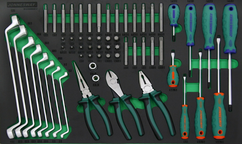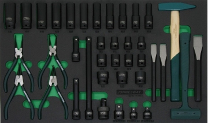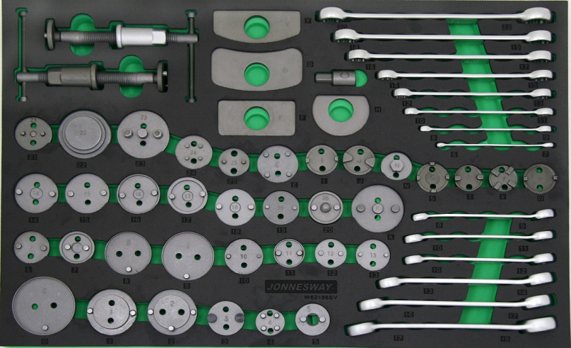 Modul - servis brzd - klíče, přípravky na brzdové pístky, 56 ks - JONNESWAY W62156SV