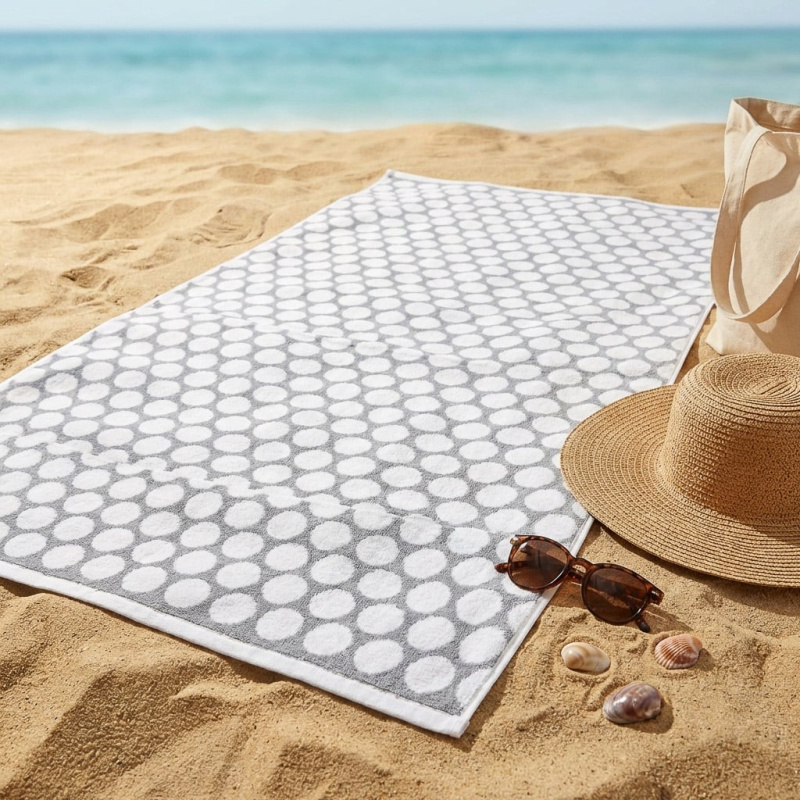 Jiří Polášek plážová osuška 12 PUNTÍKY ŠEDÉ froté, 100x180cm