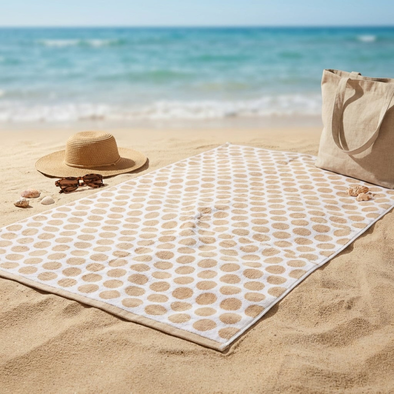 Jiří Polášek plážová osuška 15 PUNTÍKY BÉŽOVÉ froté, 100x180cm