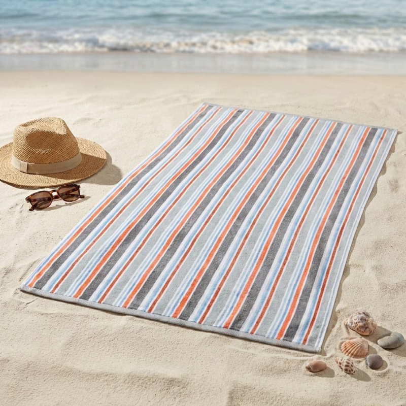 Jiří Polášek plážová osuška 19 LETNÍ PRUHY V ŠEDÉ, oranžová froté, 100x180cm