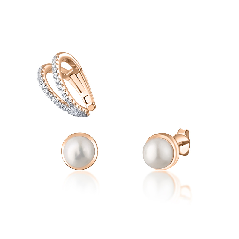 JwL Luxury Pearls Moderní set bronzových náušnic (1x záušnice, 2x pecková náušnice) JL0809