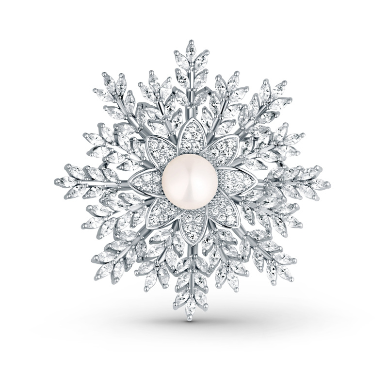 JwL Luxury Pearls Okouzlující brož ve tvaru sněhové vločky s perlou JL0874