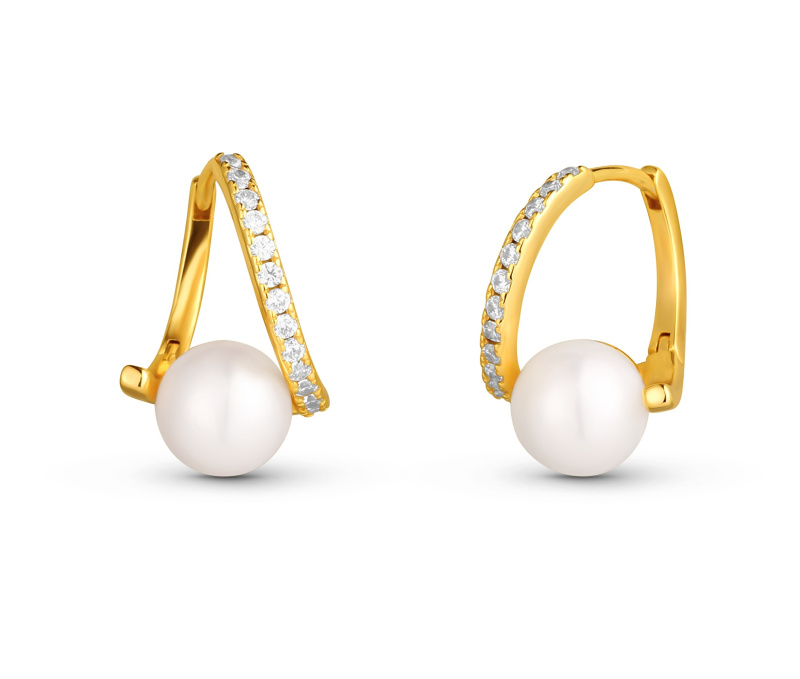 JwL Luxury Pearls Slušivé pozlacené náušnice s pravou perlou a zirkony JL0850